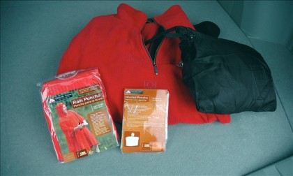 Ấm và chống nước là hai đặc điểm cần có đối với quần áo dự phòng mang trên xe. Do đó bạn nên chọn đồ bông và bộ áo gió. Loại áo thường được các tài xế chọn mang theo trên xe là áo choàng ponso - bằng một tấm vải to có khe hở ở giữa để chui đầu qua, vì dễ sử dụng và tiện ích.