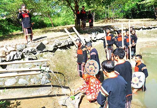 Trước khi tổ chức lễ cúng, người dân nơi đây chọn một ngày tốt làm vệ sinh buôn, dọn Suối và soạn lại máng nước, làm thịt gà, lợn để tế cúng các thần: Thần đất, thần núi, thần nước, tổ tiên. Tất cả dân làng tập trung ra Suối (khu vực đã được chọn), thầy cúng sẽ chủ trì lễ cúng với mâm đồ cúng là thịt lợn, gà và quan trọng nhất có một chậu tiết pha loãng.